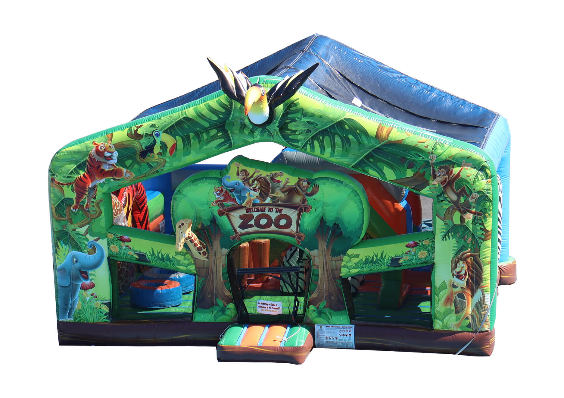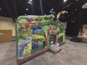 Another new inflatable for 2026, this is a beautiful animal-themed bouncer & slide combo that will keep the little ones busy all day. Includes inflatable animals, a slide, and other pop ups to keep the safari going! Has a weight limit of 100 lbs. per child, can accommodate up to 9 at a time.